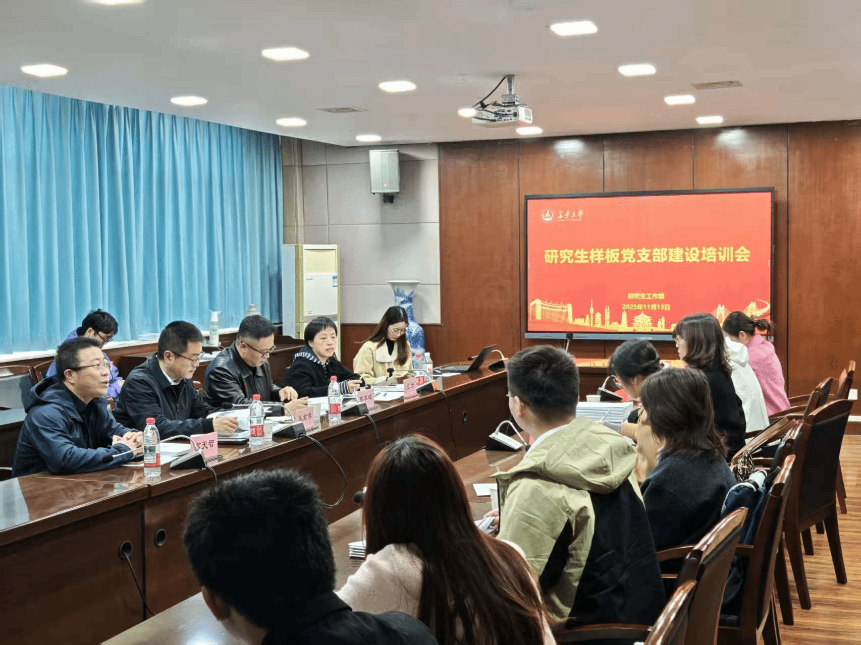 为进一步推动研究生样板党支部建设,充分发挥党支部在研究生思想政治教育和人才培养中的核心作用,11月13日下午,研究生样板党支部建设培训会在南校区北院学术交流中心五楼第五会议室召开,西安电子科技大学研究生工作部部长张君博、陕西科技大学体育部直属党支部书记陈李斌、长安大学研究生工作部全体成员和部分研究生党支部代表及党员代表参加。