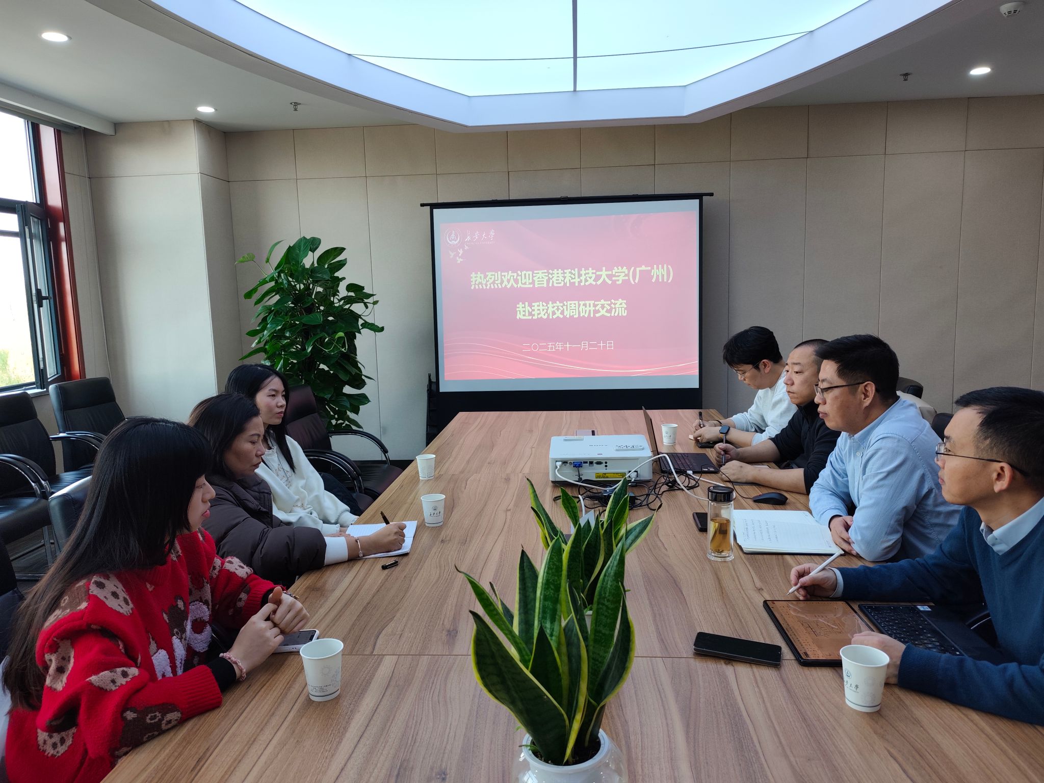 11月20日下午,香港科技大学(广州)实验室服务处副经理唐雯一行3人来校调研。实验室与设备管理处副处长雷雨滋、材料学院副院长郭亚杰等相关人员参会。