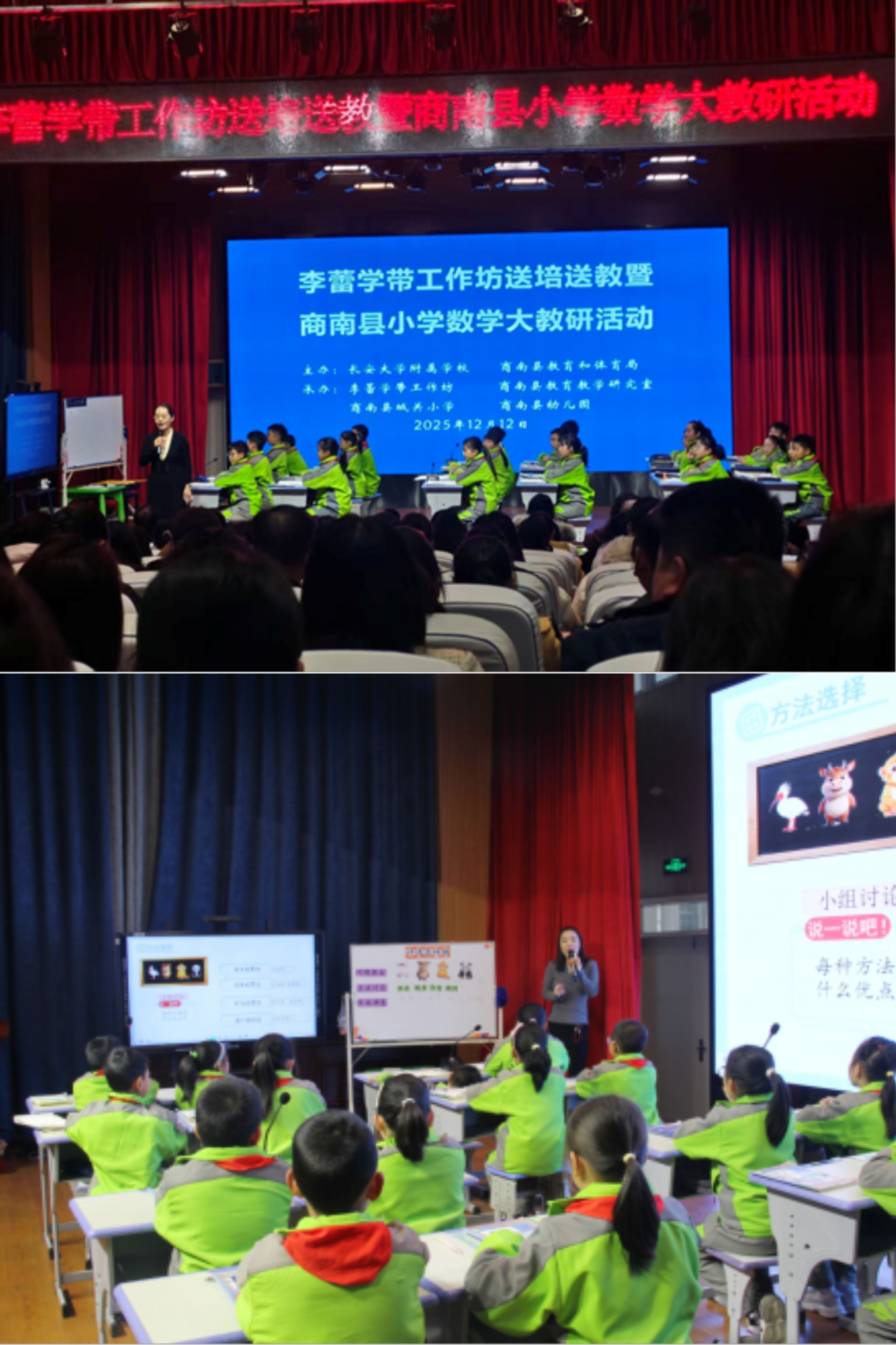为持续深化乡村振兴,12月12日,附属学校组织附属小学优秀教师赴商南县开展专题教研活动。附属小学正高级教师、省学科带头人李蕾,省教学能手培养对象高文萍担任主讲专家,商南县230余名小学数学教师参加培训。