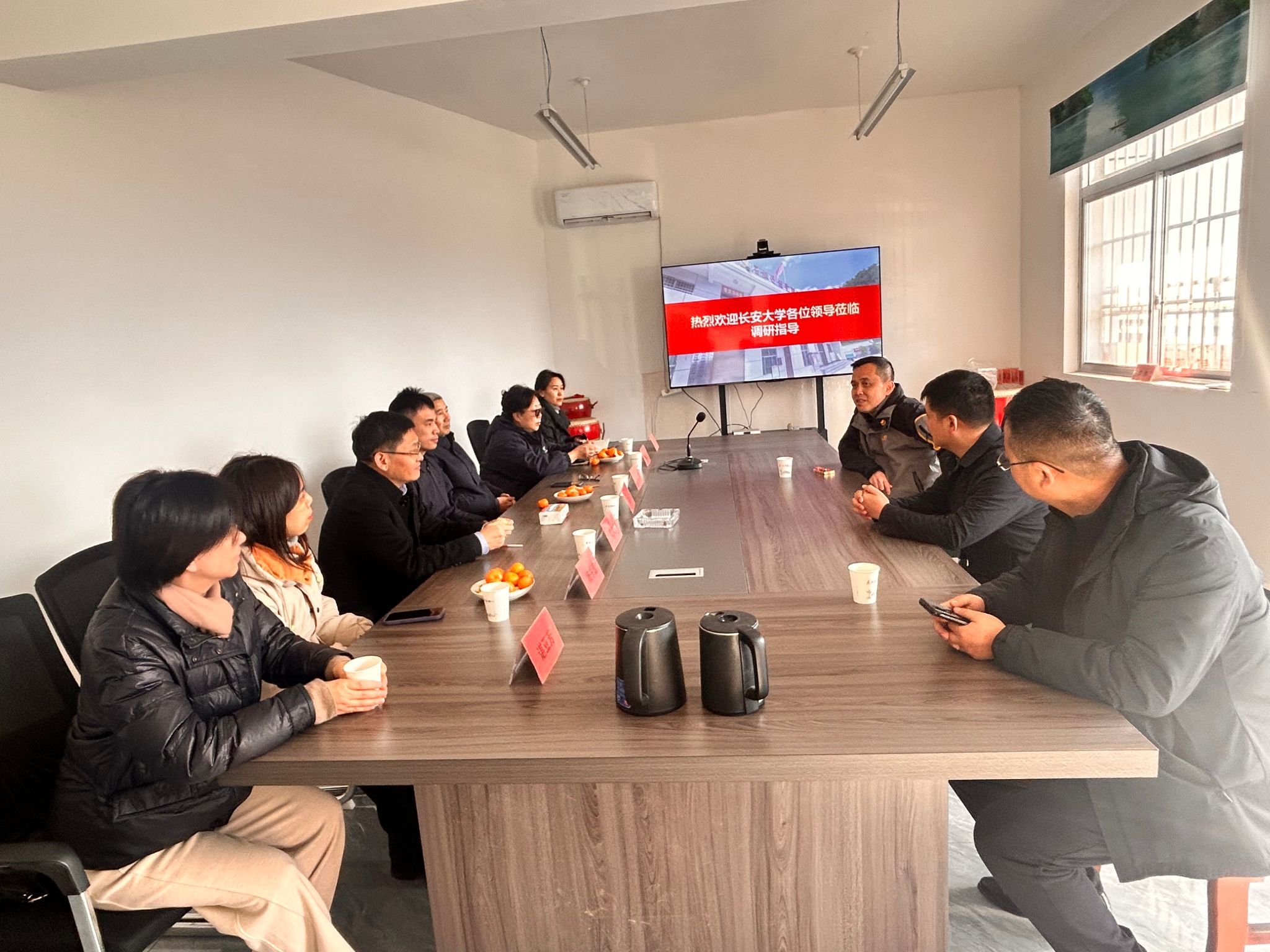 在石垭子村委会,双方召开了党建帮扶工作座谈会,围绕“党建引领乡村振兴”主题进行了深入交流与研讨。李震详细介绍了近年来在长安大学及附属学校、离退休工作处的持续帮持下,石垭子村在文化设施改善、特色产业培育及儿童教育发展等方面取得的积极成效,并深入剖析了当前乡村振兴过程中面临的机遇与挑战。郭自立结合附属学校基础教育特色与党建工作实际,指出未来将充分发挥学校教育资源优势,在数字智慧乡村建设、教育帮扶提质等方面深化帮扶,助力乡村全面振兴。与会人员围绕资源整合路径、乡村内生动力激发等议题进行了热烈讨论,进一步统一思想、凝聚共识、明确方向。