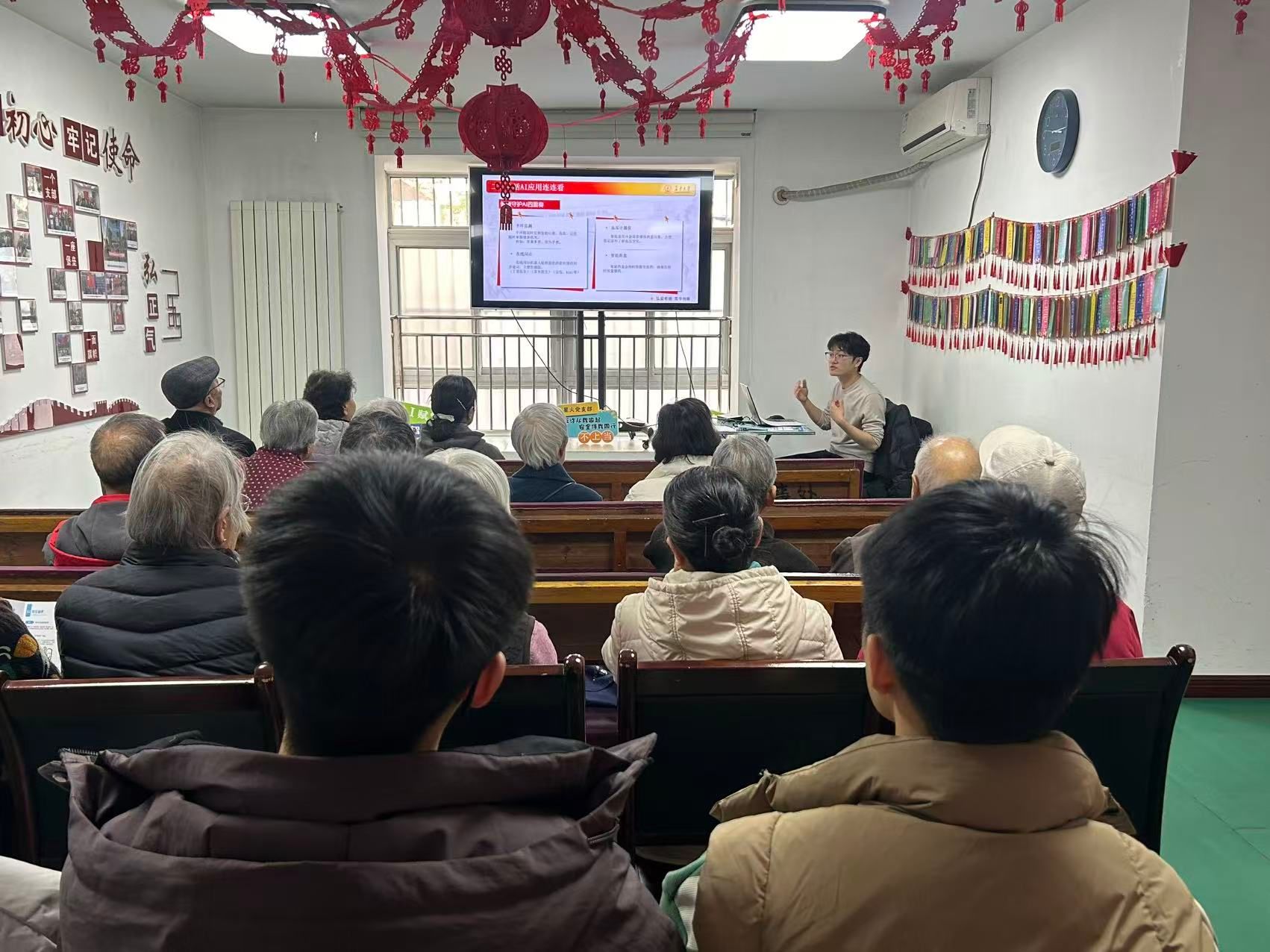 为帮助离退休老同志了解新技术、共享数字生活便利,提升识骗防骗能力,守护财产安全与身心健康,12月19日,建筑工程学院研究生星火党支部联合离退休工作处、建筑工程学院研究生会,在离退休处活动室举办“银龄智享·安全护航——让AI更好服务生活、防范AI新型诈骗”主题活动。离退休处副处长马静及党员代表、研究生星火党支部党员代表等30余人参加活动。