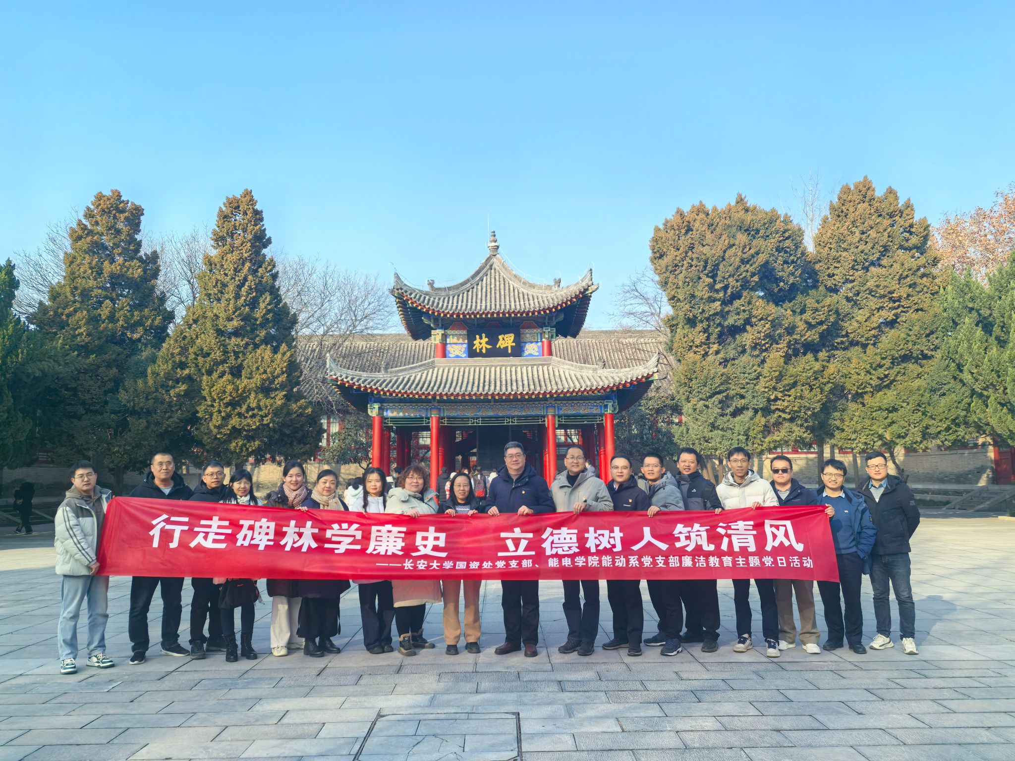 为深入贯彻中央八项规定精神学习教育,筑牢党员廉洁自律思想防线,1月5日下午,能电学院能动系党支部联合国资处党支部走进西安碑林博物馆,共同开展“行走碑林学廉史·立德树人筑清风”廉洁文化教育主题党日活动。国资处处长朱武威、学院党委书记王艳带队,全体党员在千年碑刻文化浸润中接受党性淬炼,将中华优秀传统廉洁文化与高校立德树人使命深度融合,推动廉洁教育走深走实。
