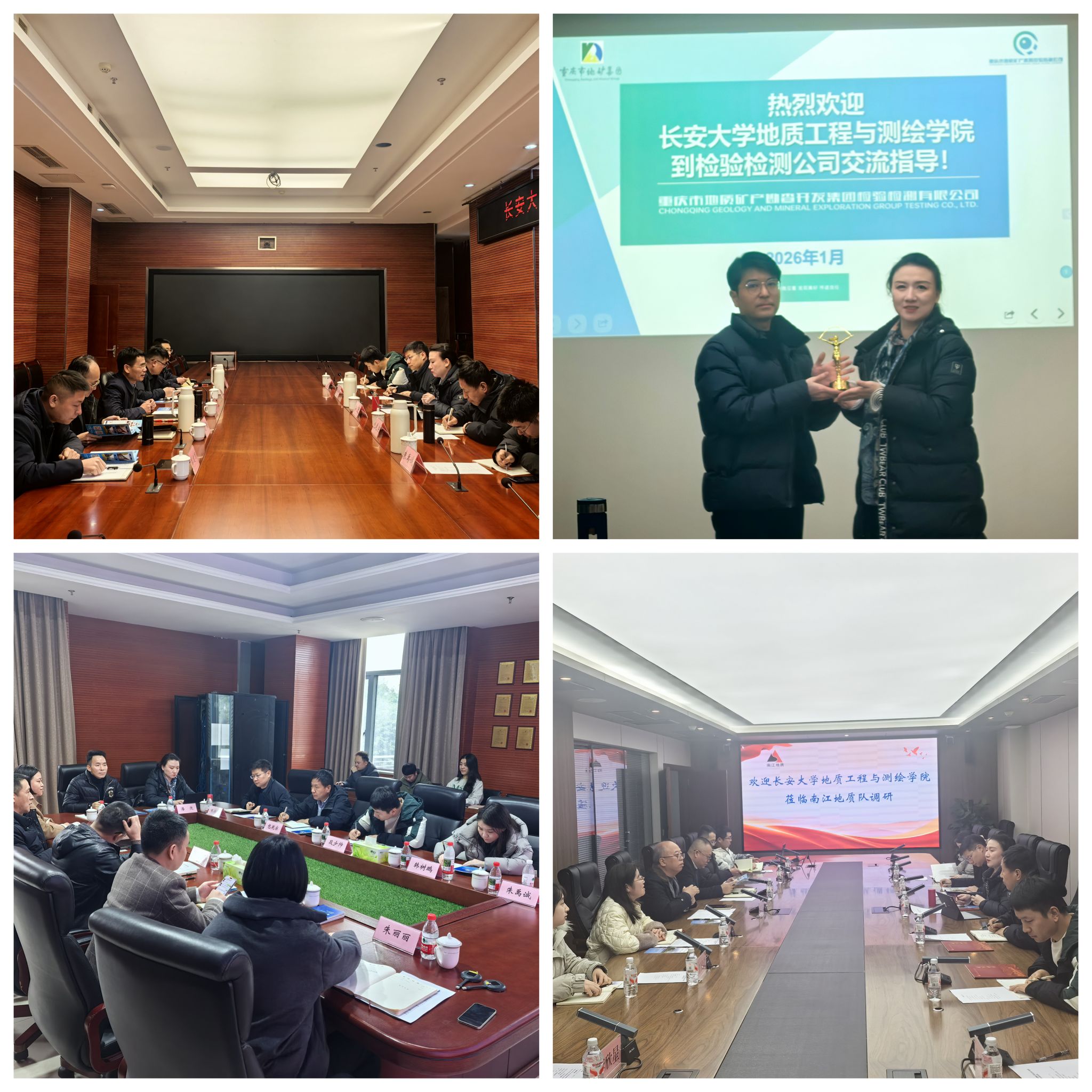 此次行动先后走访重庆市地质矿产勘查开发集团检验检测有限公司、重庆市地质矿产勘查开发局南江水文地质工程地质队、中铁八局集团第一工程有限公司、重庆市测绘科学技术研究院四家重点用人单位,聚焦人才培养共育、产学研协同创新、人才精准对接等议题展开深入交流,为服务西南建设与深化人才培养注入新动能。