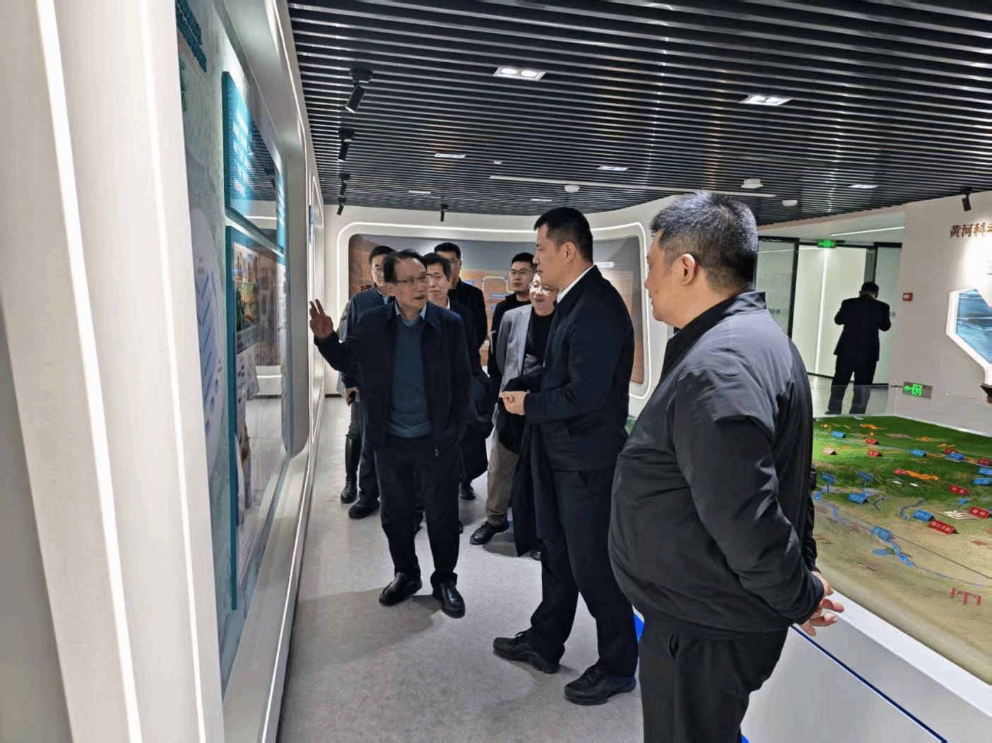座谈交流后, 徐田江一行参观了陕西省黄河科学研究院成果展览室。