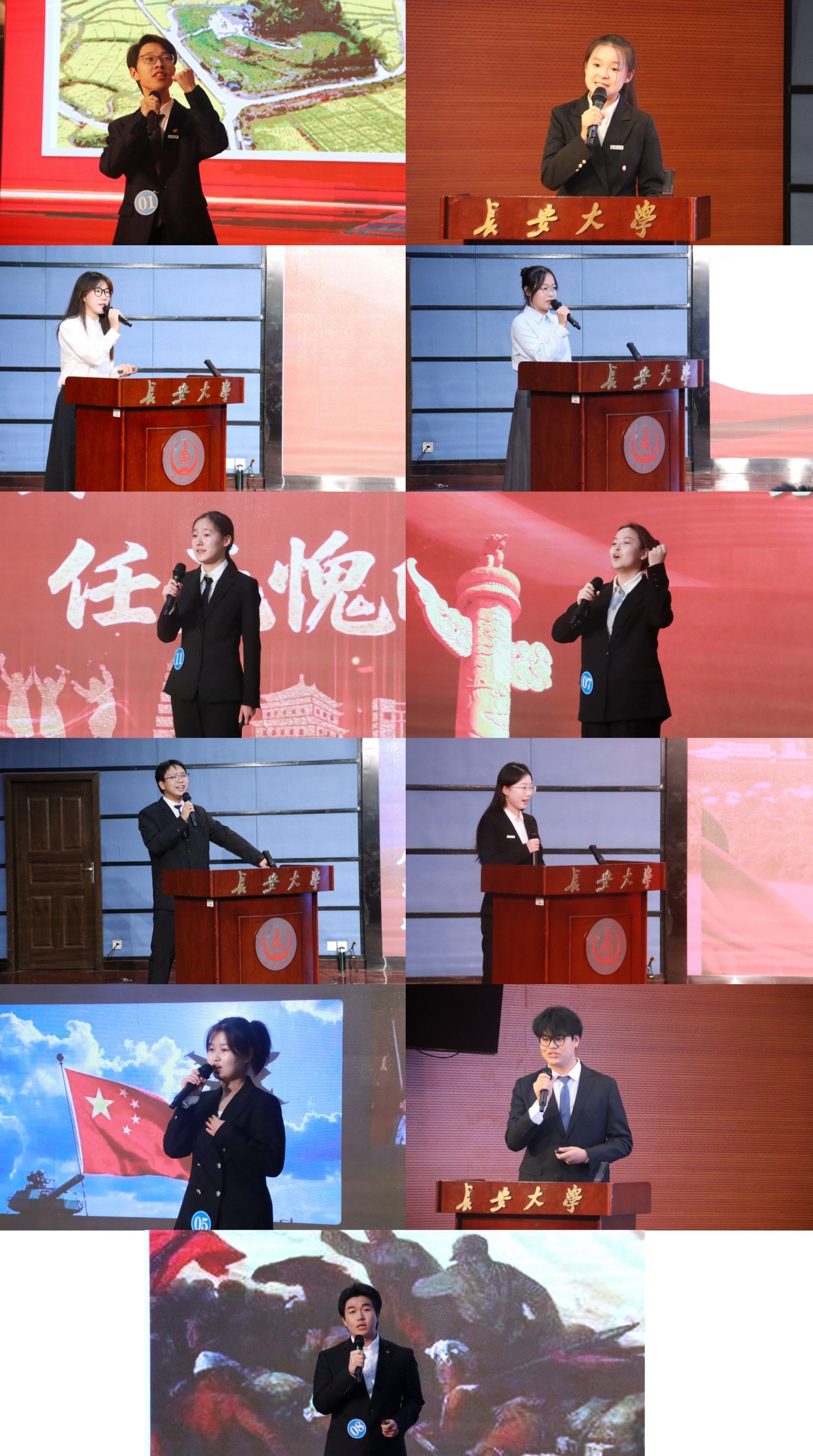 经过院(系)预赛、校级复赛的层层选拔,11名选手脱颖而出并晋级决赛。比赛中,选手们紧扣“爱国奋斗·强国励志”主题,结合校史校情学习,立足学科专业实际,深情回顾了学校创业兴学、筚路蓝缕的峥嵘岁月,生动讲述了前辈师者躬耕教坛、奉献家国的感人事迹,抒发了内心炽热的爱校荣校情怀,彰显了“立报国强国大志向,做挺膺担当奋斗者”的青春风采。参赛选手们声情并茂,或慷慨激昂,或娓娓道来,他们纷纷表示,将从校史学习中传承红色基因,赓续红色血脉,践行“弘毅明德,笃学创新”的校训精神,勤奋学习、锐意进取,为学校“双一流”建设贡献力量,争做担当民族复兴大任的时代新人。