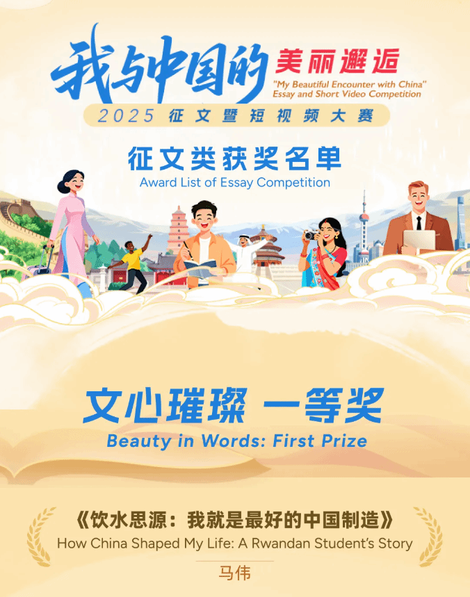 近日,由教育部国际合作与交流司指导,教育部留学服务中心主办,环球网承办的2025年“我与中国的美丽邂逅”征文暨短视频大赛赛事结果正式公布。我校两名优秀校友与两名在校国际学生凭借真挚的文字表达与独特的跨国视角,在征文类“文心璀璨”奖项评选中脱颖而出,一举斩获一等奖1项、三等奖2项、优秀奖1项,用笔墨书写出与中国的动人故事。