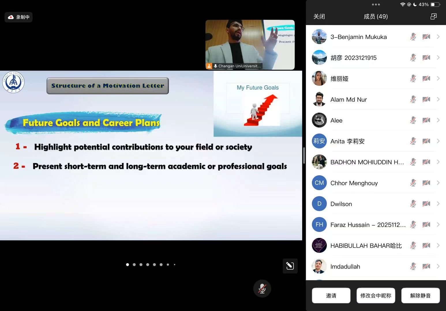 1月16日上午,学校首期国际学生申请指导工作坊活动成功举办。此次活动聚焦国际学生申请材料水平提升,邀请2名优秀博士生担任主讲人,线上、线下同步开展,近百名国际学生踊跃参与,互动频繁、反响良好。