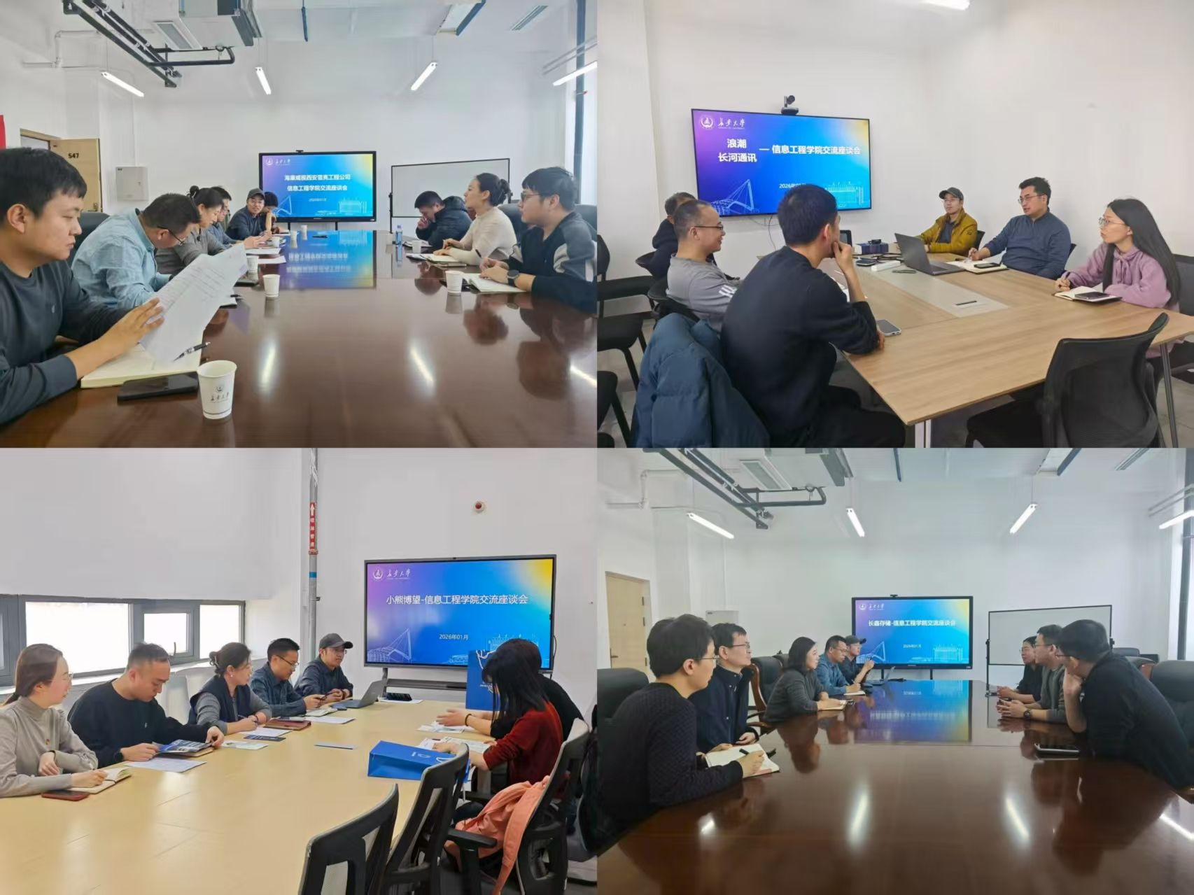 为贯彻落实访企拓岗促就业专项行动,进一步拓宽毕业生就业渠道,更好促进校企人才精准对接,1月12-16日,信息工程学院创新工作模式,将“走出去”和“请进来”相结合,邀请海康威视西安雪亮、小熊博望、浪潮、长河通讯、长鑫存储等五家重点企业进校,开展系列访企拓岗专项对接活动。学院党委副书记郭咏梅、副院长王威,计算机科学与技术系、电子信息工程系、通信工程系、人工智能系等系主任,毕业年级辅导员分别参加了各场对接会,通过密集、精准的交流,深化校企合作,全力促进毕业生高质量充分就业。