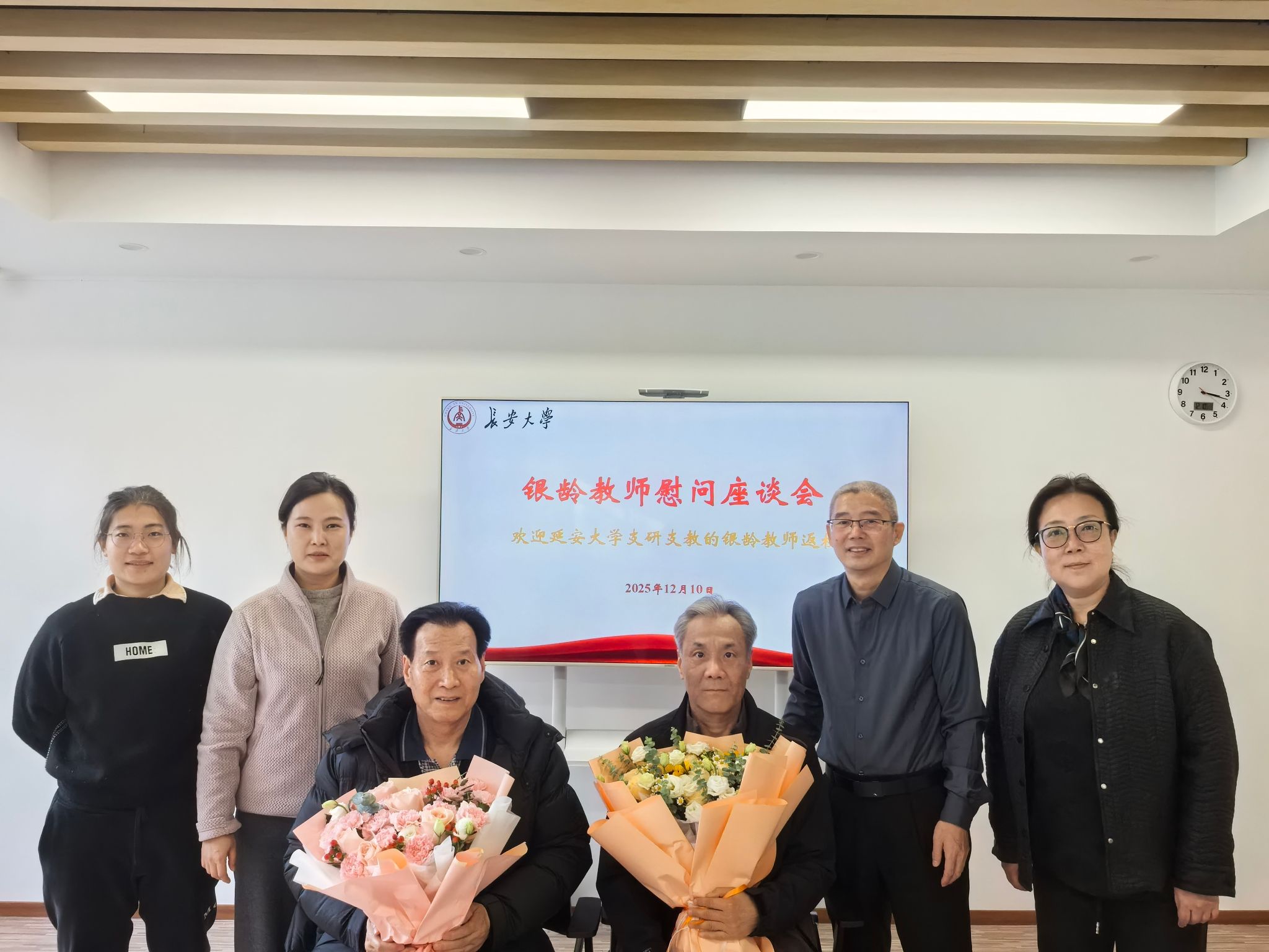 为弘扬尊师重教的优良传统,把温暖与敬意送到银龄教师心坎上,2026年1月中旬,离退休工作处开展慰问返校银龄教师活动,离退休处班子成员为十余位银龄教师送上鲜花、慰问品和新春祝福,让其感受到学校的敬意、关怀与温暖。