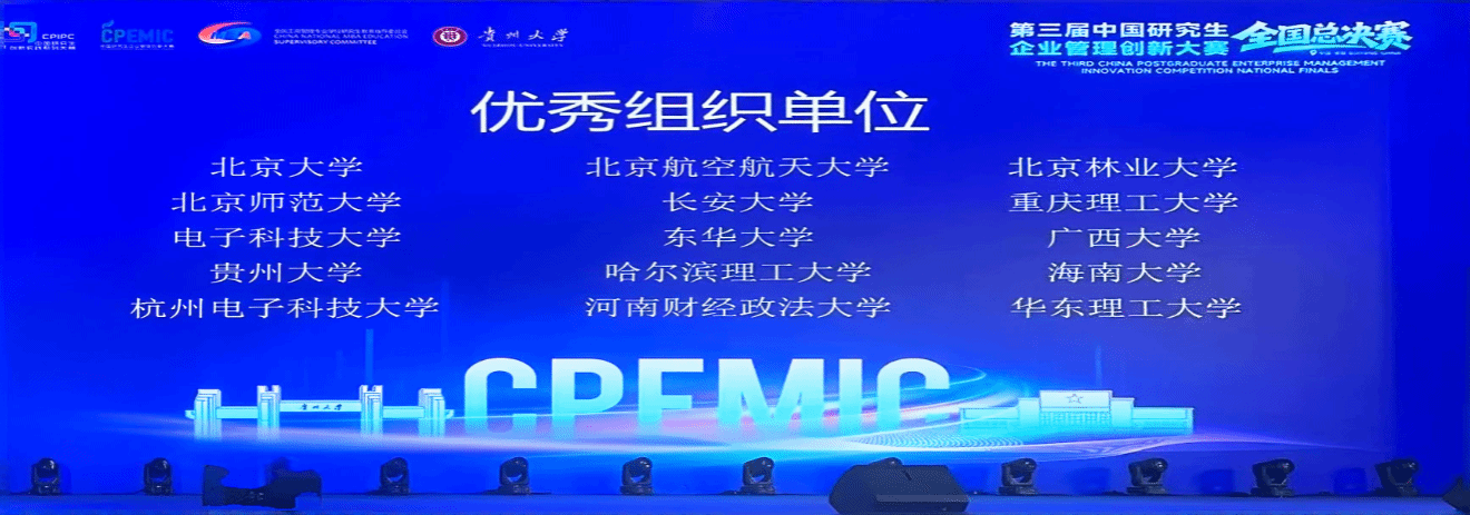 11月9日,第三届中国研究生企业管理创新大赛全国总决赛在贵州落下帷幕,我校荣获国家级一等奖1项、二等奖5项、三等奖2项;我校荣获优秀组织奖。