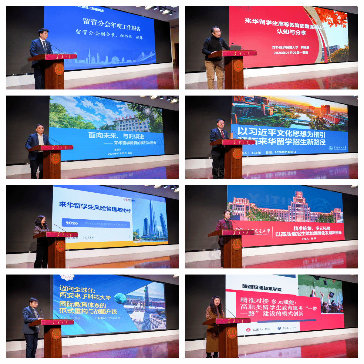 在经验分享环节,西安交通大学、西安电子科技大学、陕西职业技术学院分别围绕高质量招生、国际教育体系重构、高职类留学生教育模式创新等主题,分享了各校在推进来华留学工作中的创新做法与典型经验。