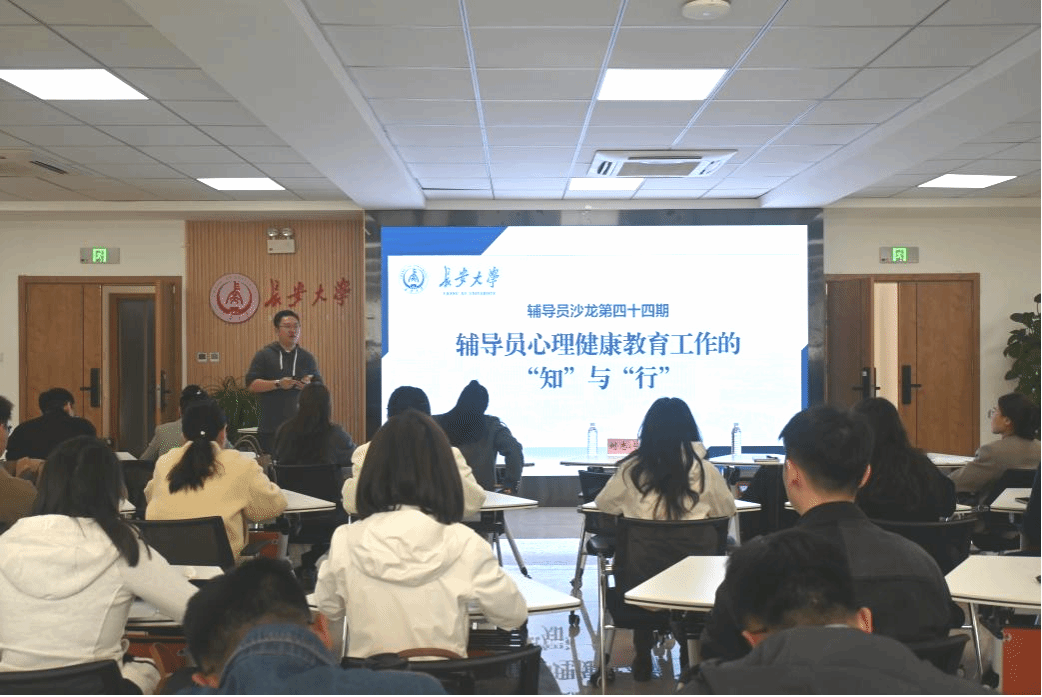为全面提升辅导员心理育人专业素养与工作实效,3月26日下午,学校第四十四期辅导员沙龙在朝晖园示范性园区二层团体辅导室举行。本期沙龙由长安大学“育见心光”辅导员工作室承办,以“辅导员心理健康教育工作的‘知’与‘行’”为主题,特邀陕西高校辅导员素质能力提升训练营“业务标兵”获得者、陕西师范大学辅导员贾丹阳,以及长安大学“育见心光”辅导员工作室主持人刘志兴作主题分享。我校2024年、2025年入职的专兼职辅导员、各院(系)负责心理育人专项工作的辅导员及“育见心光”工作室全体成员等60余人参加沙龙。