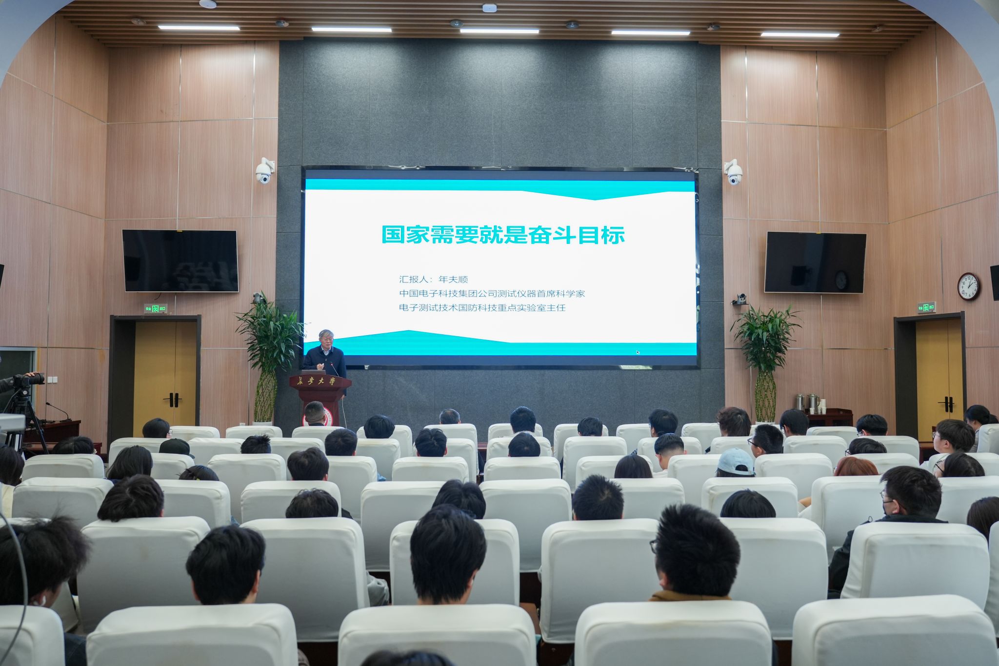 4月7日下午,科学家精神主题宣讲活动在北校区师生服务大厅二层第二报告厅举行。中国电子科技集团公司测试仪器首席科学家、电子测试技术重点实验室主任年夫顺应邀来校作《国家需要就是奋斗目标》专题报告。副校长陈建勋出席报告会。报告会由科学技术研究院副院长、校科协秘书处主任姚以亮主持。