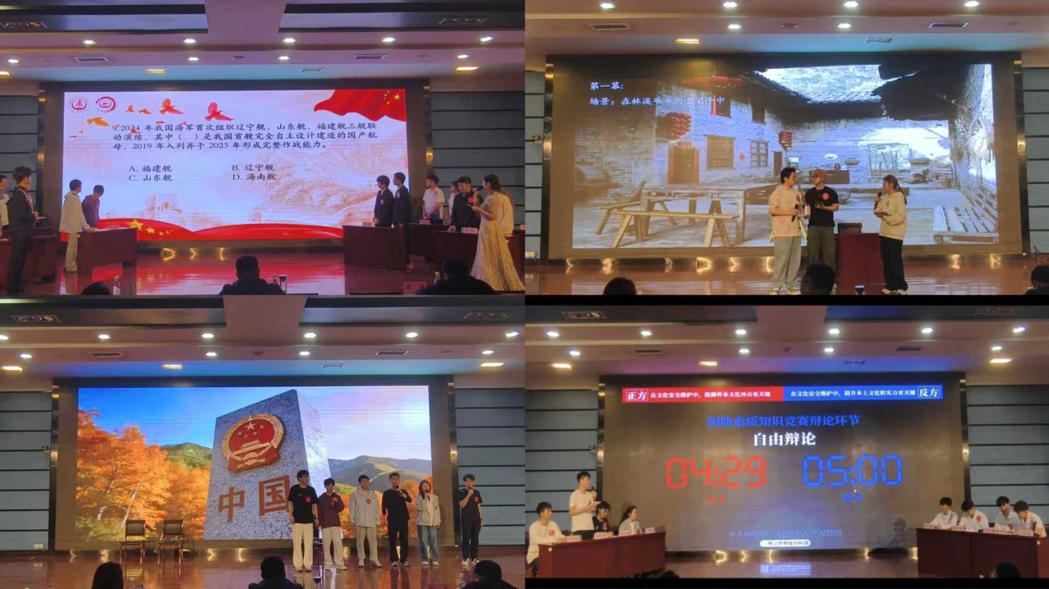 经过前期预赛、复赛等环节的选拔,共有8支代表队入围决赛。决赛聚焦国防教育和国家安全教育主题,围绕同学们在日常学习生活中面临的实际问题,设置了知识抢答、微课展演、巅峰辩论等三个环节,全方位考核了参赛队伍的知识储备以及团队协作、创意表达与思辨能力,有效融教育性、知识性于互动性、趣味性之中,比赛现场气氛热烈。