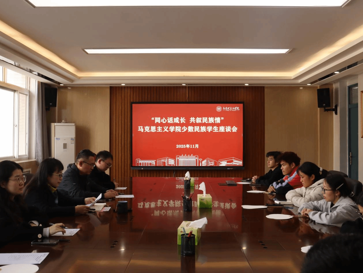 为深入学习贯彻习近平总书记关于加强和改进民族工作的重要思想,推动铸牢中华民族共同体意识教育走深走细走实,11月13日,马克思主义学院在基础楼510会议室举办“同心话成长·共叙民族情”少数民族学生座谈会。学院党委书记李小芹,院党委副书记、纪委书记冯迪,院学办主任兼团委书记秦丰,辅导员刘堃以及学院全体少数民族学生参会。会议由冯迪主持。