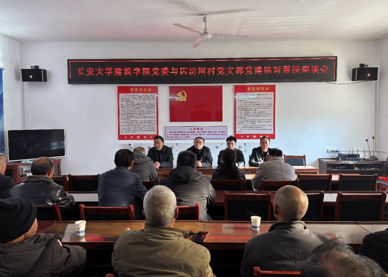 在店坊河村举行的座谈会上,店坊河村村委会副主任魏国成回顾了建筑学院多年来对店坊河村的持续帮扶。他表示,在学院的智力支持和资源助力下,村党支部团结带领党员群众,聚焦产业发展、基层治理与民生改善,积极破解发展难题,公共服务设施不断完善,乡村振兴工作取得阶段性成效。贾侃结合党的二十届四中全会关于“加快农业农村现代化,扎实推进乡村全面振兴”的战略部署,详细介绍了建筑学院立足自身学科专业特色,通过规划设计咨询、乡村建设指导、人才培养与志愿服务等多元化方式,助力美丽乡村建设的工作思路与实践方向。表示学院将持续深化党建结对共建机制,探索更加务实有效的帮扶路径,为店坊河村的全面振兴注入高校动能。与会人员围绕党建引领与乡村振兴的具体举措进行了深入交流。