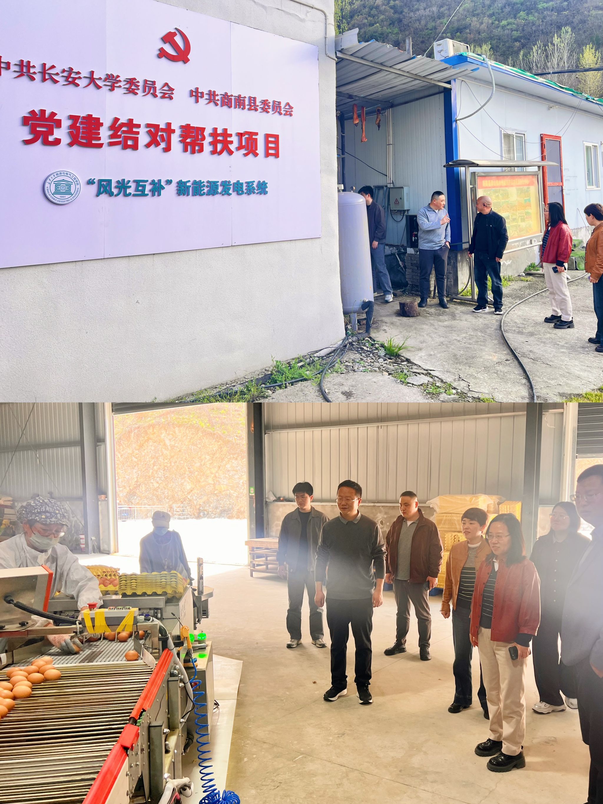 3月31日,在商南县南凰凤禽农业科技有限公司,双方重点围绕企业电气化设备升级改造、厂区光伏板架设等核心需求开展实地调研,结合学院电气、新能源领域专业优势,初步对接技术帮扶方向,为企业绿色低碳转型、降本增效提供技术支撑。在商南县青山绿水恒诚农产品农民专业合作社,实地考察学院此前落地的党建结对帮扶品牌项目—用于农业生产的“风光互补”新能源发电系统,现场查看设备全流程运行状态,系统采集运行核心数据,全面评估项目在农业生产中的实际效能,并与企业负责人深入交流设备运维优化、系统升级扩容等后续需求,持续深化帮扶项目实效。