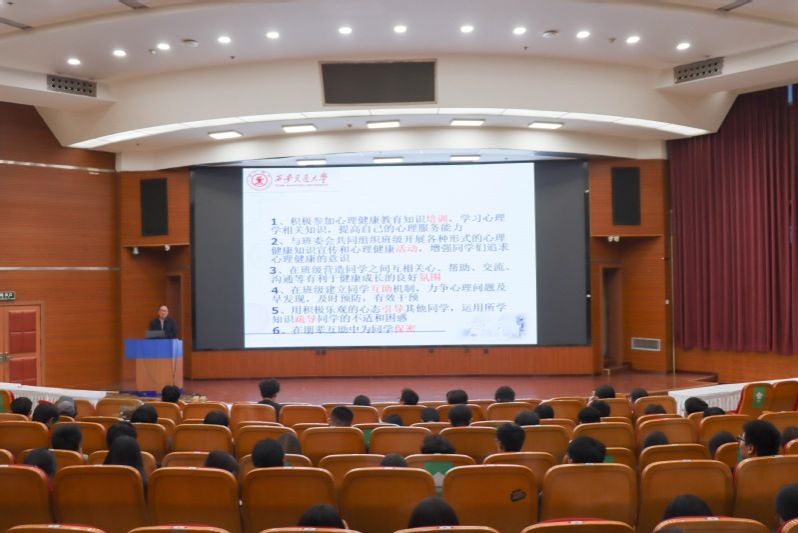 为进一步发挥我校“两系四级”心理健康教育工作体系作用,提升心理委员专业履职能力,增强学生朋辈互助实效,4月7日晚,我校2025级心理委员工作技能培训讲座在北校区逸夫图书馆西侧裙楼报告厅举办。本次培训以“大学生常见心理问题的识别与应对”为主题,特邀西安交通大学大学生心理健康教育与咨询中心主任姚斌教授担任主讲。2025级全体本科生心理委员及校院两级彩虹心理协会学生代表300余人参加培训,培训由心理中心副主任张石磊主持。