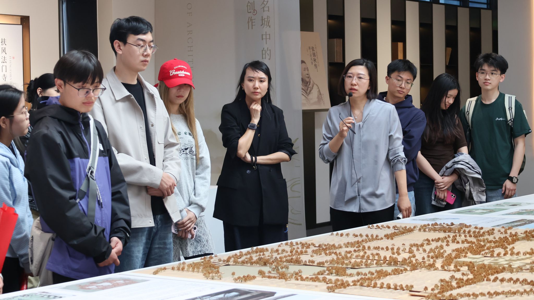 研学过程中,师生依次参观各展区,通过模型、多媒体展陈,深入学习张锦秋院士扎根西部、服务人民的报国初心与精益求精的工匠精神。从经典建筑到文脉传承,大家深刻领会新时代科学家精神与家国担当,坚定文化自信与专业报国信念。