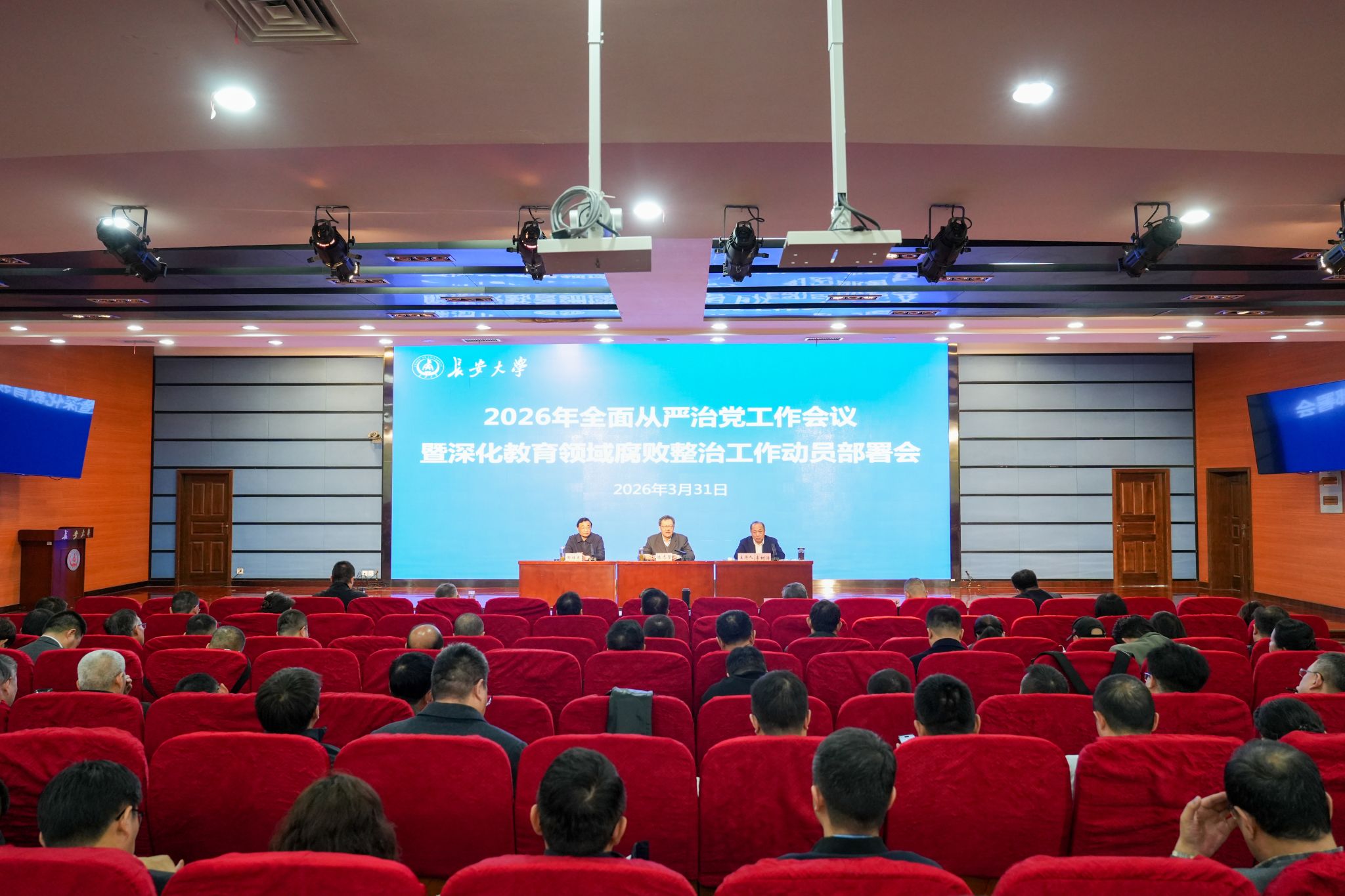 3月31日上午,学校在北校区北辰会议中心二层报告厅召开2026年全面从严治党工作会议暨深化教育领域腐败整治工作动员部署会,贯彻落实党中央有关决策部署和教育部党组工作要求,安排布置学校2026年全面从严治党和深化教育领域腐败整治工作重点任务。校长李树涛主持会议,校党委书记陈志坚作总结讲话。校党委副书记、纪委书记陶继东作安排部署。陈志坚对推进2026年全面从严治党工作提出了总体要求,对深化教育领域腐败整治工作进行了动员部署。...