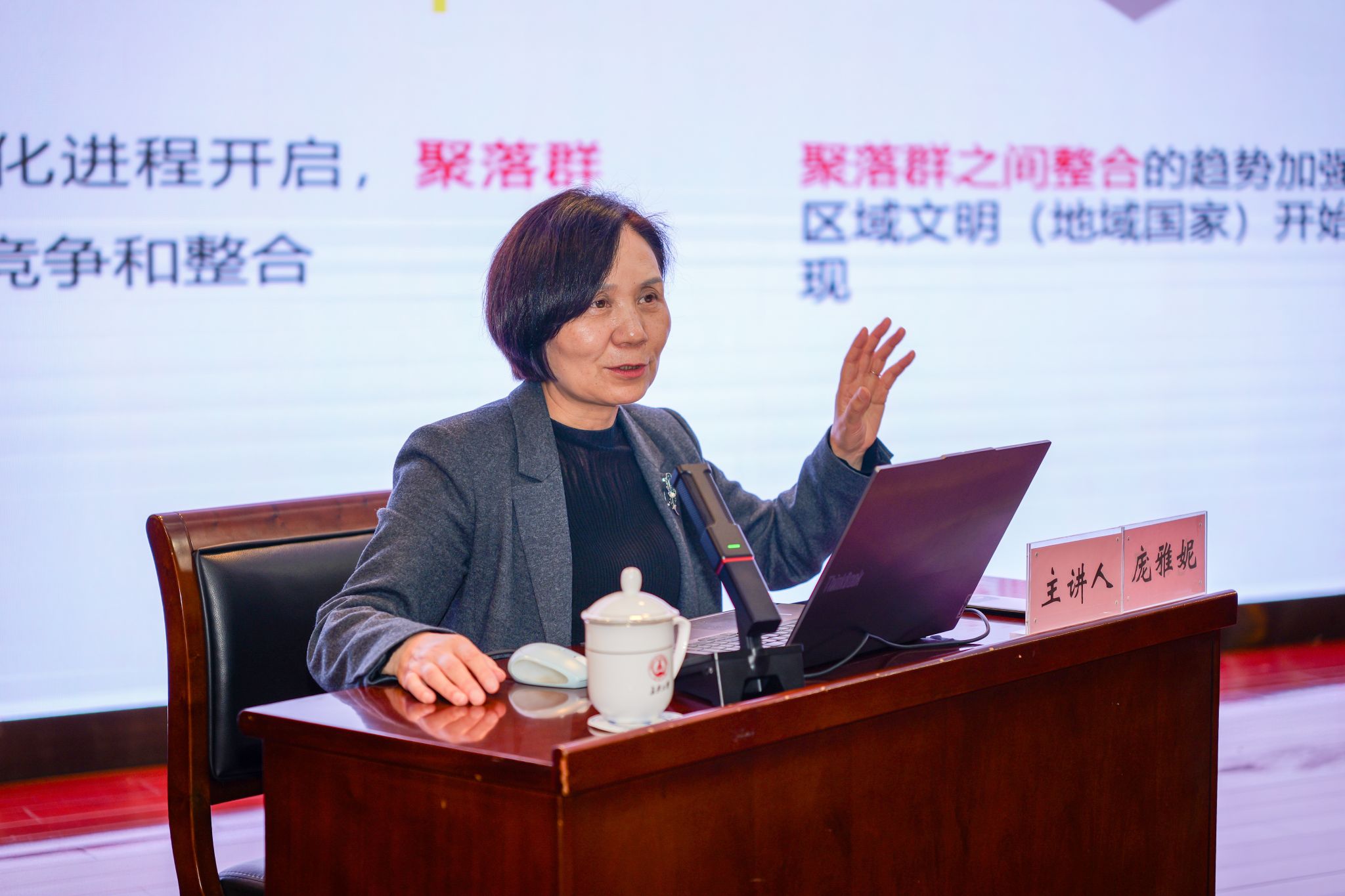 庞雅妮以“‘早期中国’系列展览解码中华文明起源与早期发展”为主题,从“中华文明探源工程”切入,结合陕西历史博物馆的“彩陶・中华”“玉韫・九州”“吉金・中国”三大展览,深入解析了中华文明的起源问题,详细阐述了陶器、玉器与青铜器在文化融合、国家演进和礼乐文明中所发挥的关键作用,系统解读了中华文明“多元一体”的早期发展进程,为师生构建起一部“可触摸的中华文明起源史”。