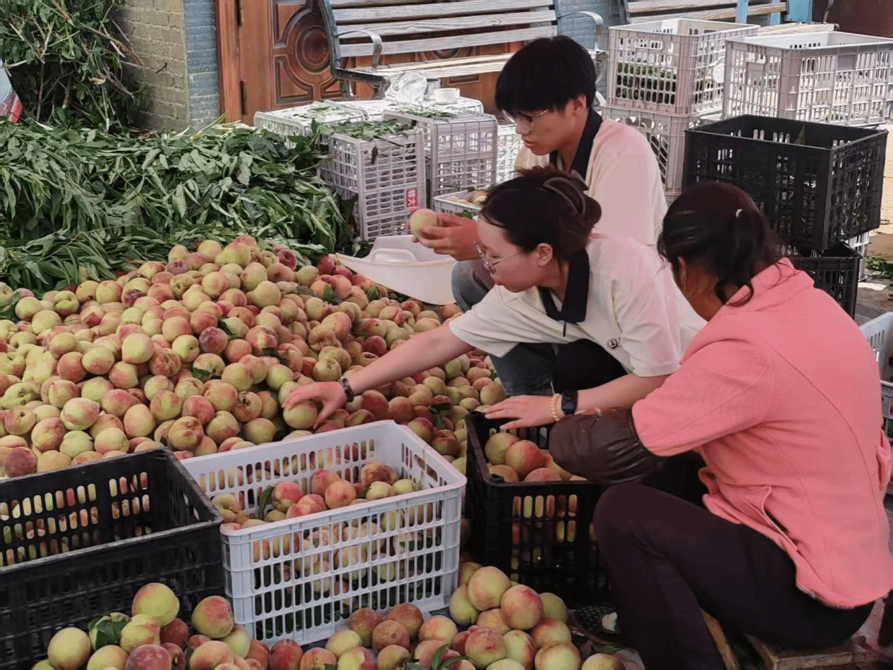 在村委会广场,鲜桃交易热火朝天。队员们参与艳红桃分拣包装,亲身感受该村以艳红桃、黄桃为支柱产业的蓬勃景象(日销超三万斤,旺季达五万斤),直观认识到特色产业对村民增收的带动作用。深入普梯古寨,队员们调研民宿、手工艺等文旅资源现状与挑战,围绕“用普通话讲好布依族故事”积极建言献策,并创新采用趣味形式推广普通话,以语言桥梁助力文旅融合与乡村振兴。