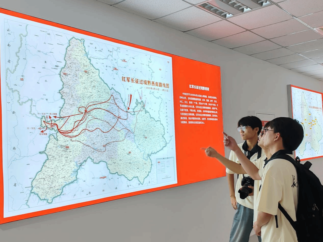 在威舍红军村,队员们沿着红军足迹,感悟军民鱼水深情。在“铭记十日——红军长征过境黔西南历史”展览馆,借助战略转移路线图、武器、拓片等珍贵史料,深刻理解长征精神的时代内涵。在兴义市烈士陵园,队员们肃立默哀,瞻仰革命烈士纪念碑,细读“为群众安危挺身而出”的英烈事迹,通过红色印迹展馆的文物感受革命薪火代代相传。