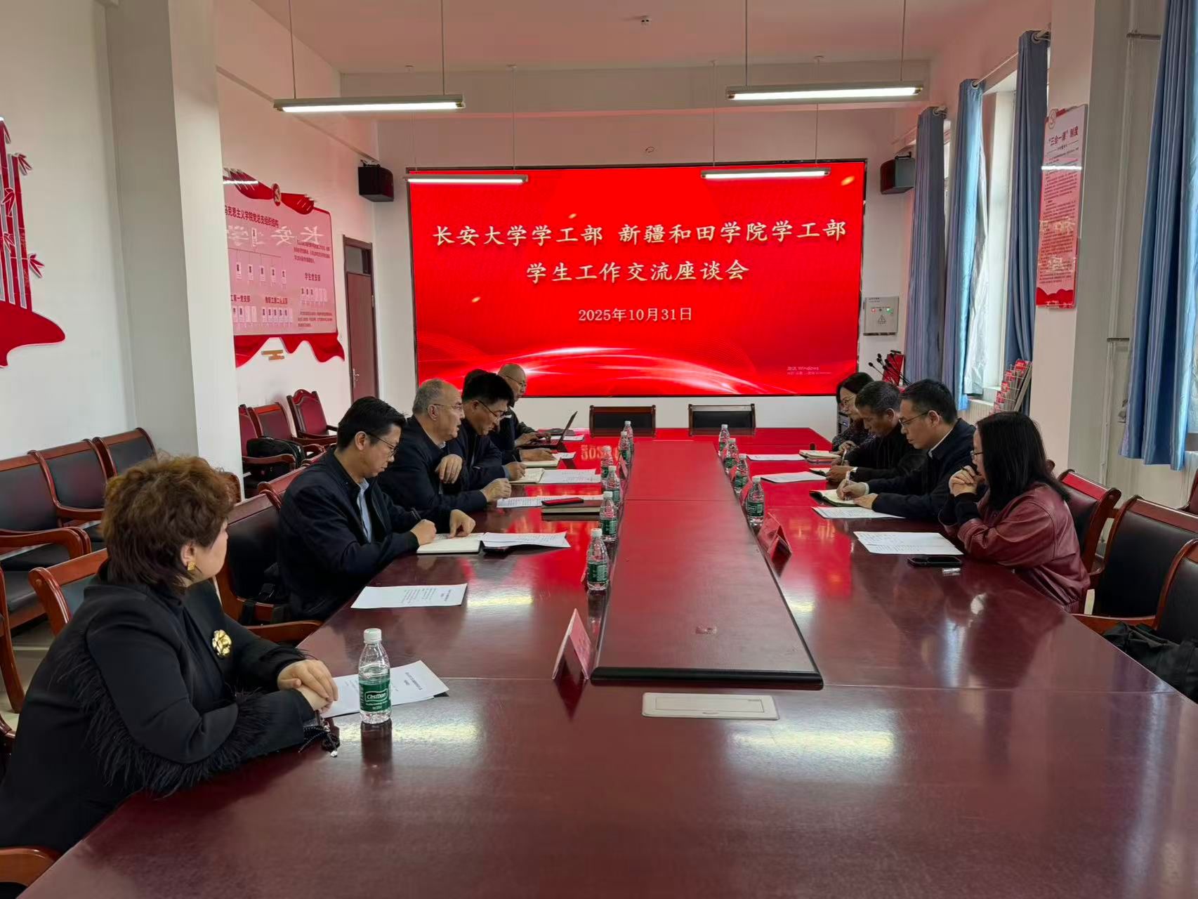 座谈会上,赛甫鼎·艾拜对我校一行的到访表示热烈欢迎,对长安大学给予的支持和帮助表示衷心感谢。他详细介绍了新疆和田学院的建设发展情况,充分肯定了我校辅导员和教师在校工作中展现的专业素养与奉献精神,感谢他们在推动学生工作、提升育人实效等方面发挥的积极作用,同时希望双方持续深化合作,推动学生工作创新发展。