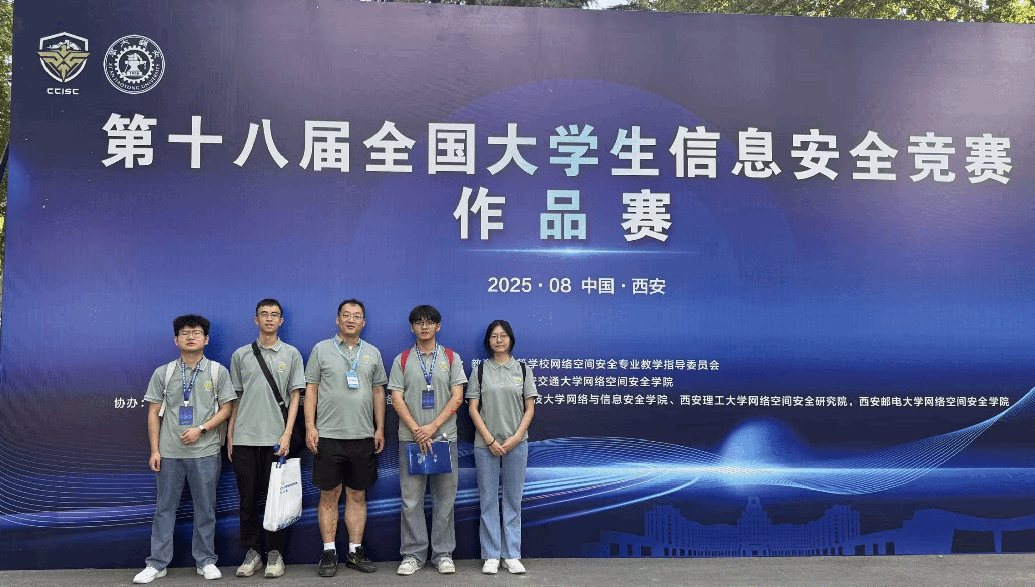 8月14日,第十八届全国大学生信息安全竞赛作品赛决赛在西安交通大学兴庆校区举办,我校信息工程学院李安旭、凌子杰、陈志欣、刘陈峰四位本科生组成的长大网安小队,由赵一老师指导的作品—《基于容错预约束的环链端到端加密监管通讯系统》荣获三等奖。这是我校首次获得该比赛奖项,实现了学校在该赛事奖项上“零的突破”。