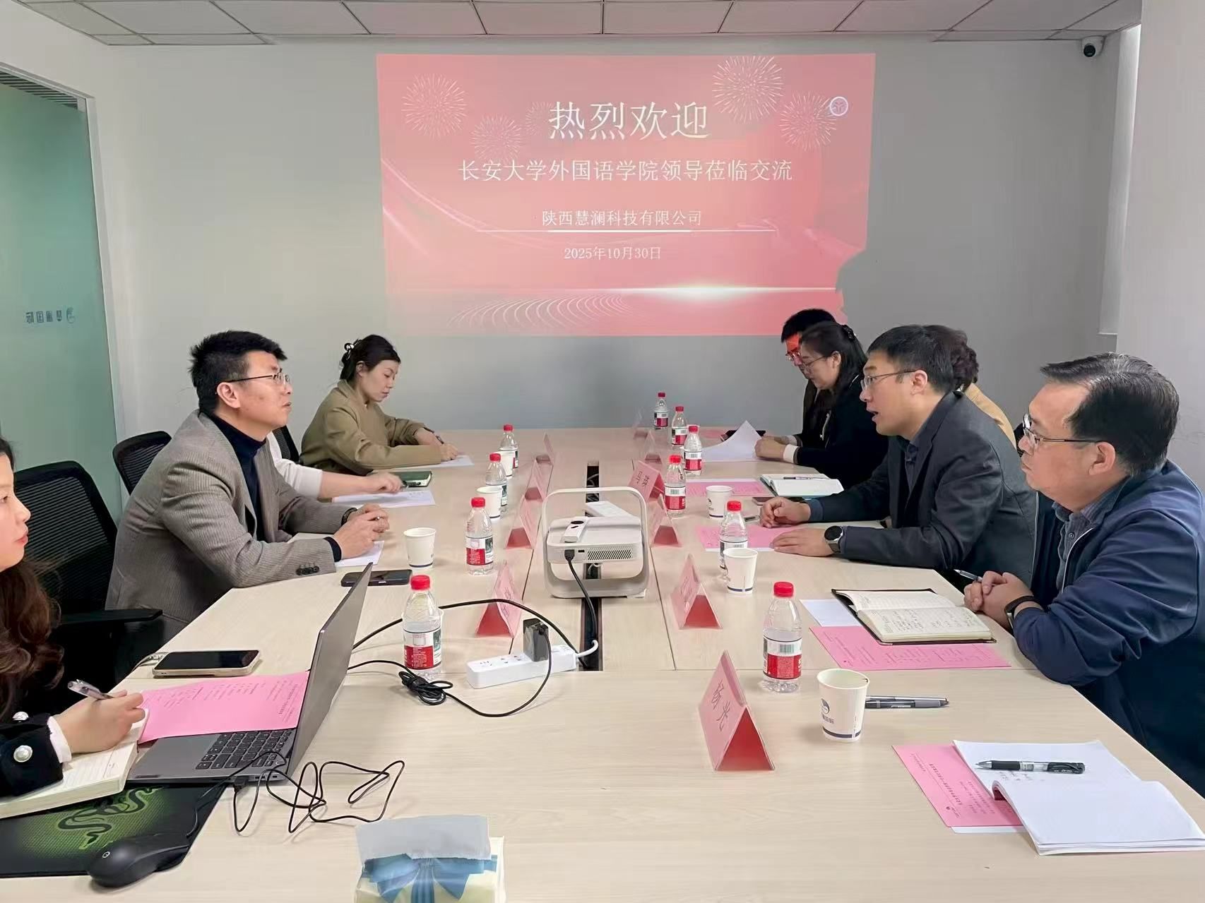 为深入贯彻落实党中央、国务院关于高校毕业生就业工作的决策部署,深化产教融合,精准对接人才培养的实习实践需求,进一步拓宽外语类专业毕业生就业渠道,10月30日下午,外国语学院党委书记张永、副院长马瑛、英语系主任赵斌、日语系党支部书记李国玲、办公室主任杨光、学办副主任王子章等一行前往陕西慧澜科技有限公司开展访企拓岗促就业专项行动。