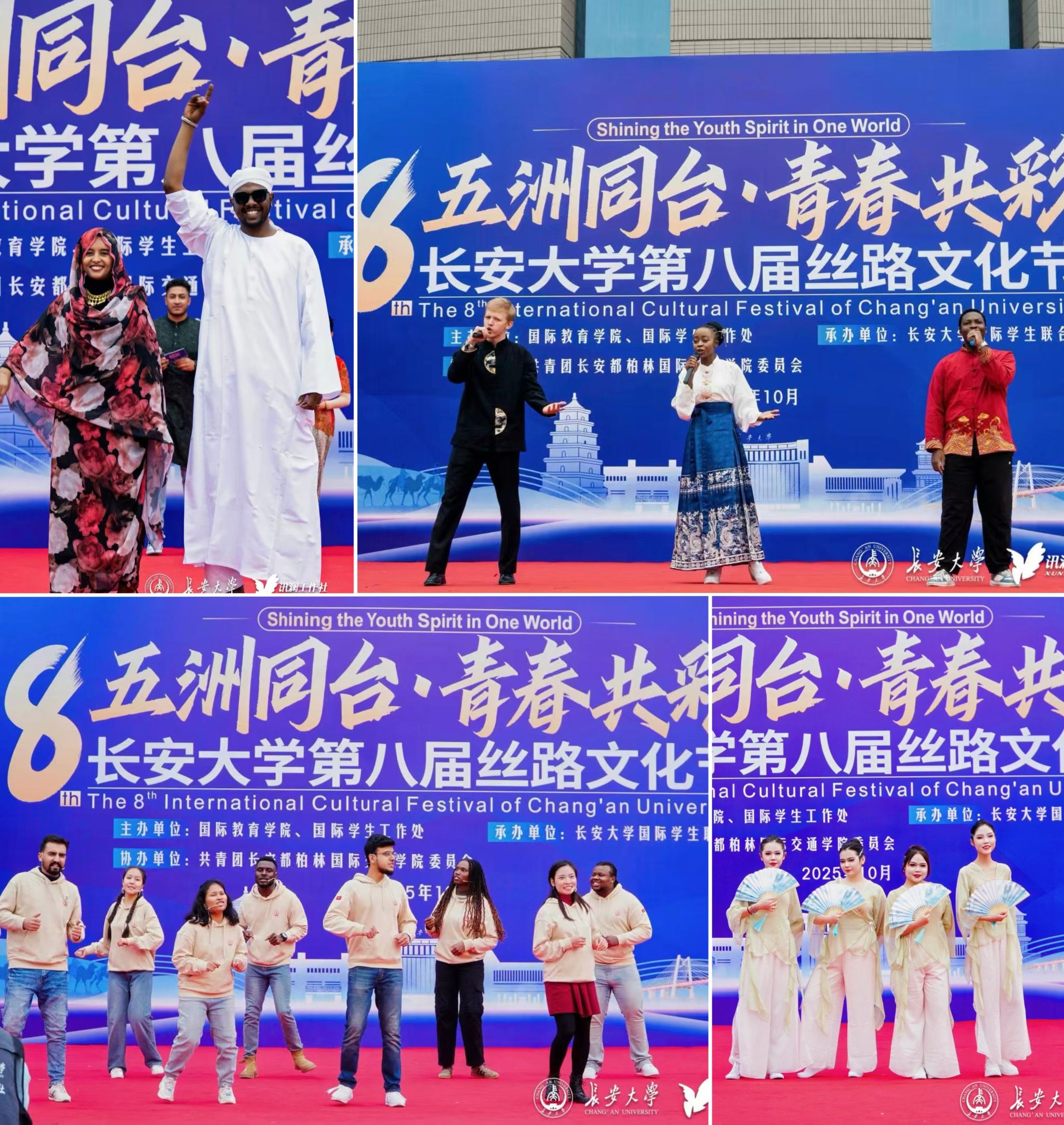 10月25日,“长安大学第八届丝路文化节暨来华留学教育70周年庆启动仪式”在北校区树蕙园广场举行。本届文化节以“五洲同台·青春共彩”为主题,吸引了来自百余个国家的数千名中外师生参与。
